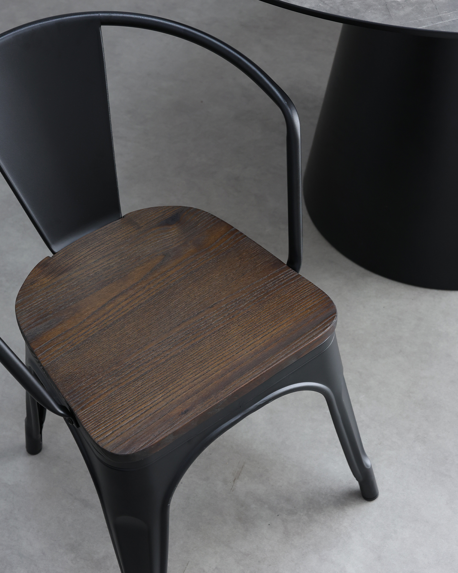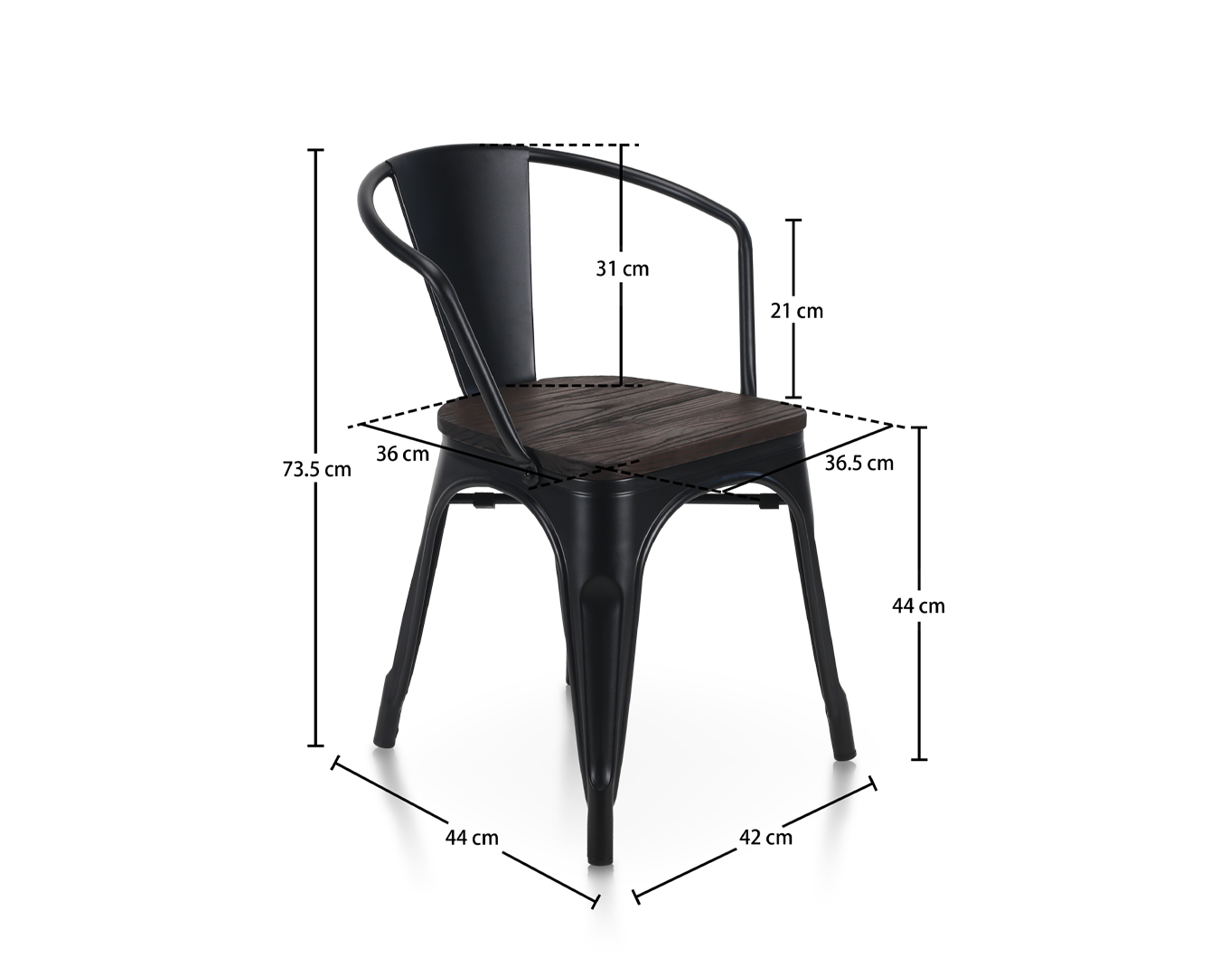 • Ang mga armrests ay ergonomically na hugis upang magbigay ng pinakamainam na suporta, habang ang backrest ay nag -aalok ng isang komportableng sandalan. Ang Elm Wooden Seat ay nagdaragdag ng isang natatanging visual na apela. Ang mga compact na sukat ng upuan at magaan na istraktura ay ginagawang madali ang pagmamaniobra at stack, na nag -aalok ng pagiging praktiko nang hindi nakompromiso sa estilo.