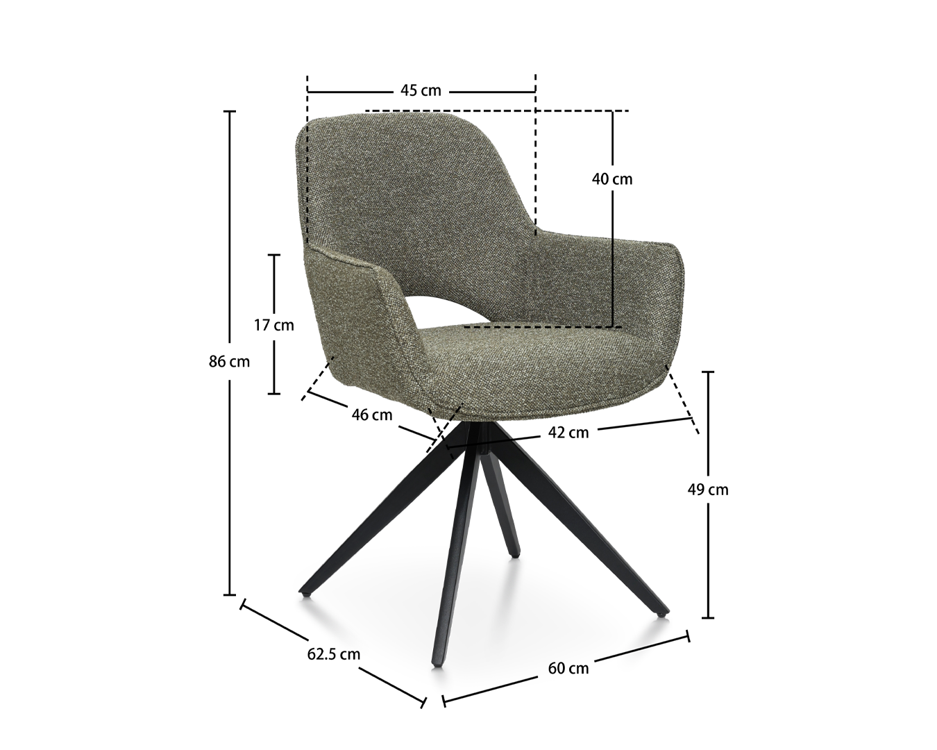 - Laki: W60*D62.5*H86cm / sh: 49cm $