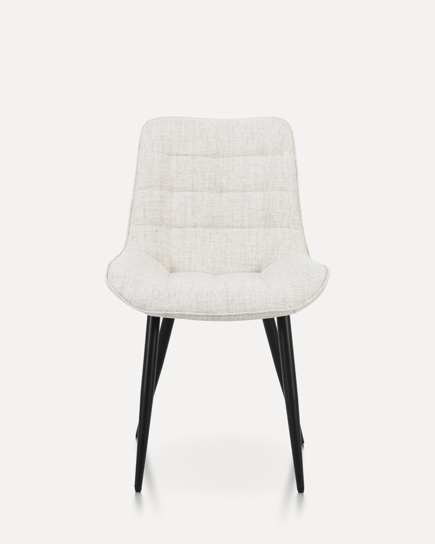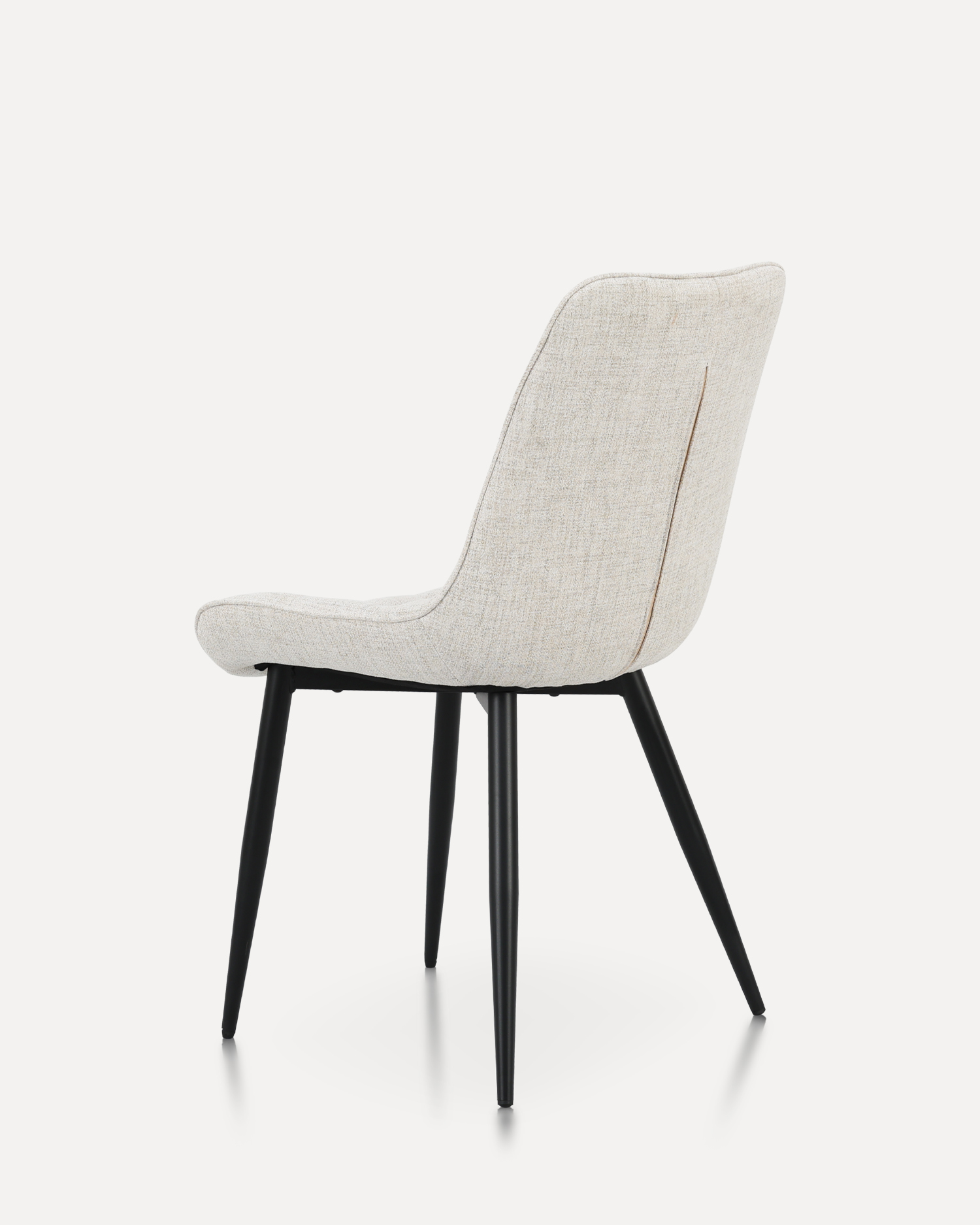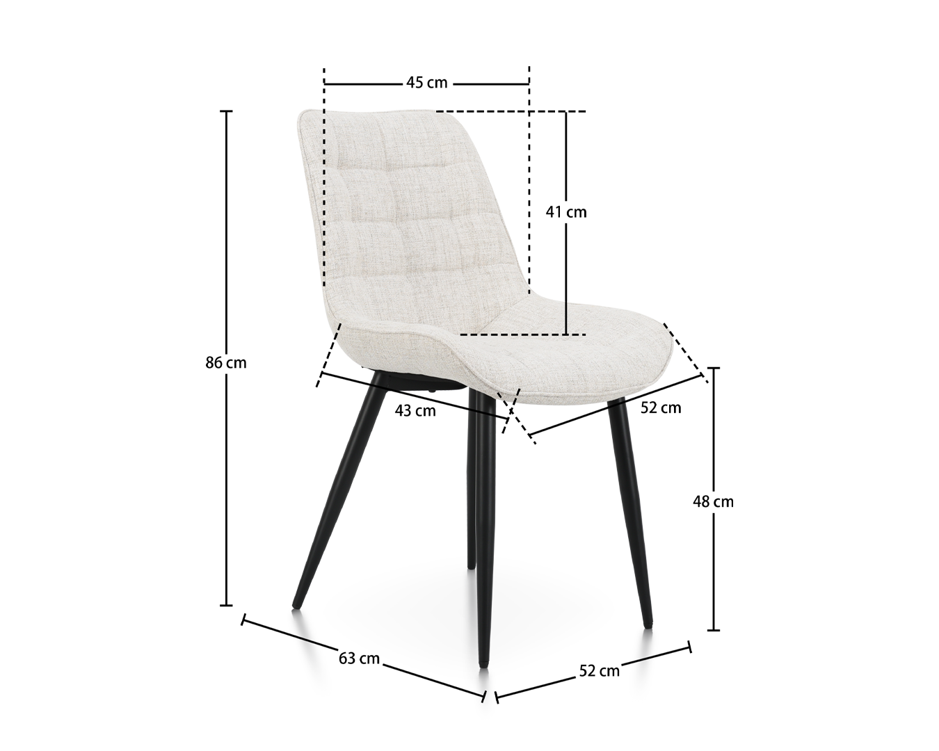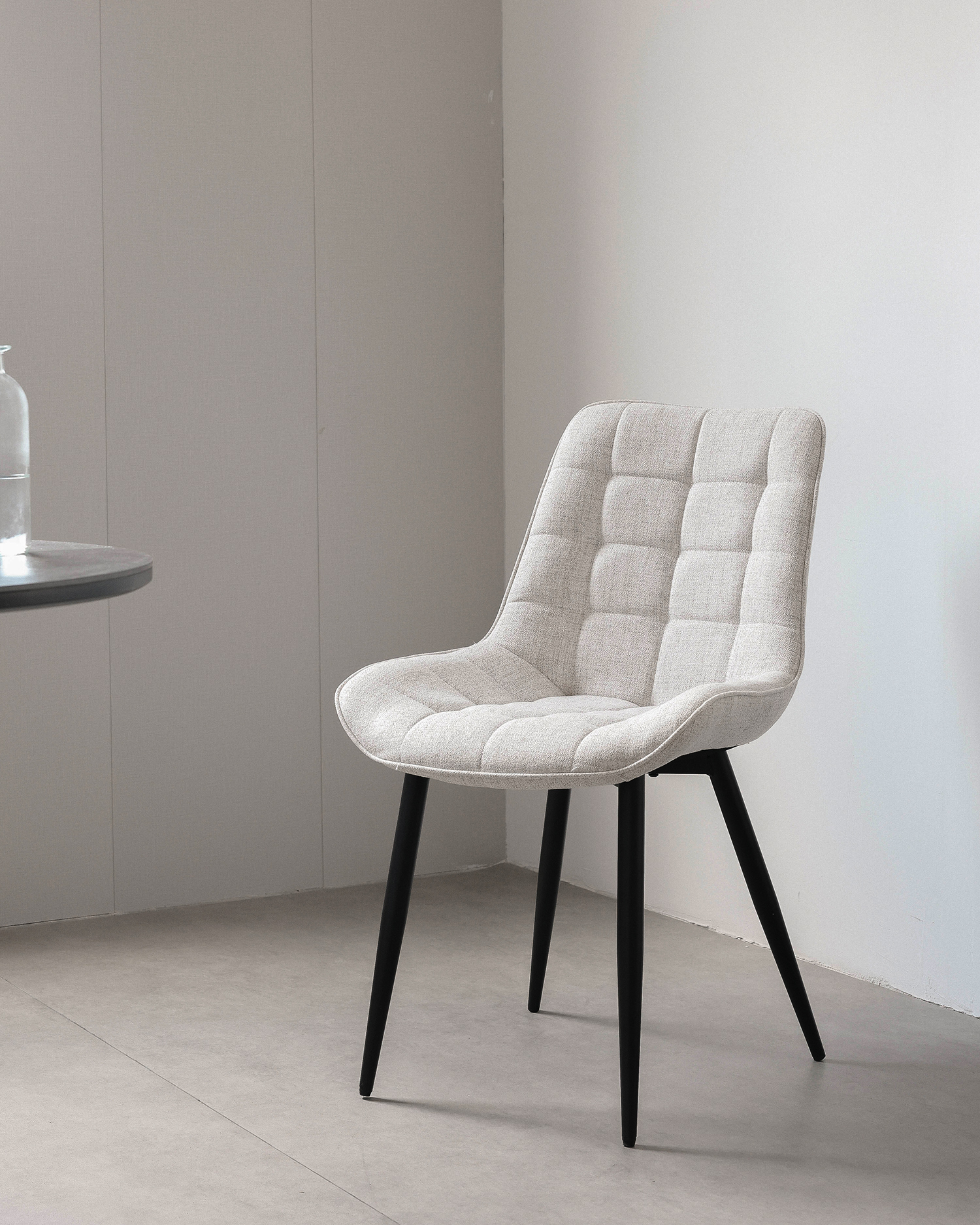 • Upholstered upuan: Ang upuan ay upholstered sa isang de-kalidad, naka-texture na tela na nagbibigay ng isang malambot at komportableng karanasan sa pag-upo. Ang neutral na kulay ng beige ay umaakma sa anumang dekorasyon sa silid -kainan.
