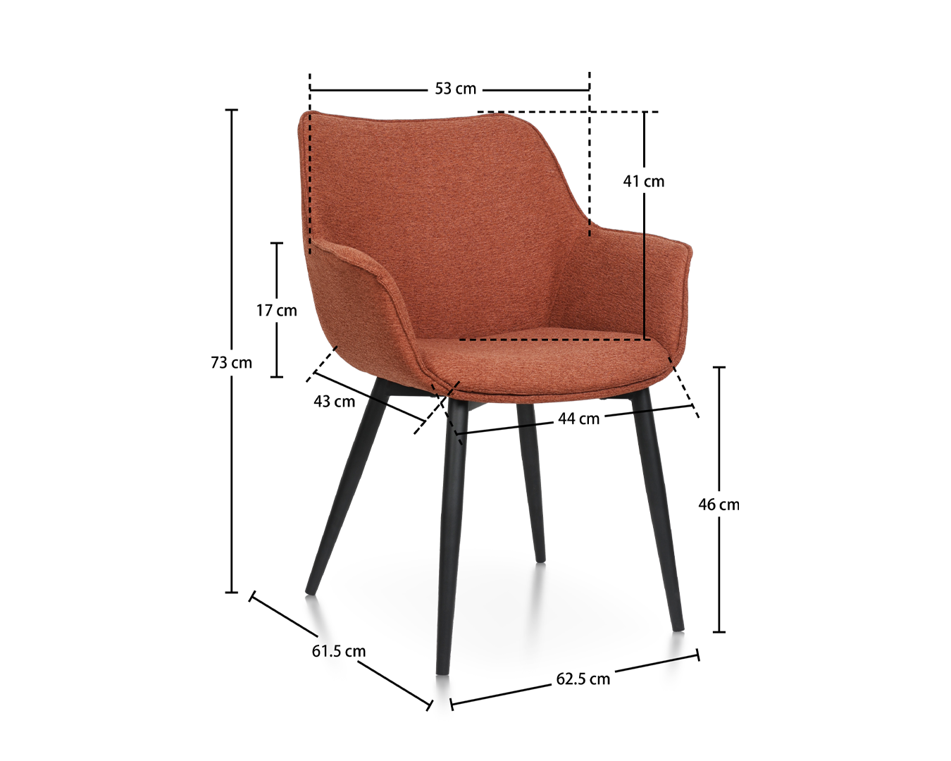 - Laki: W62.5*D61.5*H73cm / sh: 46cm $