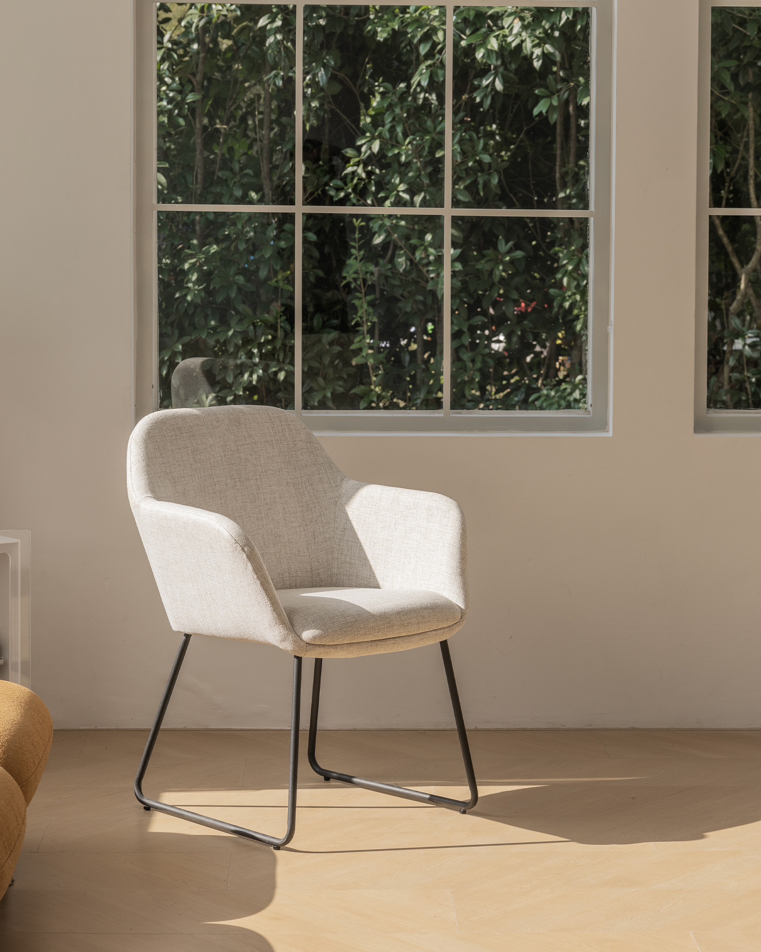 • Ang matikas na beige upholstery ay nagsisiguro ng maximum na kaginhawaan, habang ang hubog na backrest ay sumusuporta sa iyong gulugod nang walang kahirap -hirap. Ang mga itim na binti ng metal ng upuan ay parehong naka -istilong at matibay, tinitiyak ang katatagan at kahabaan ng buhay.