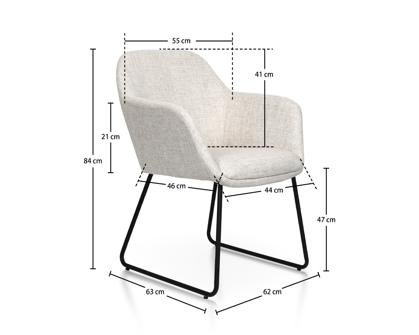 - Laki: W62*D63*H84CM / SH: 47cm $