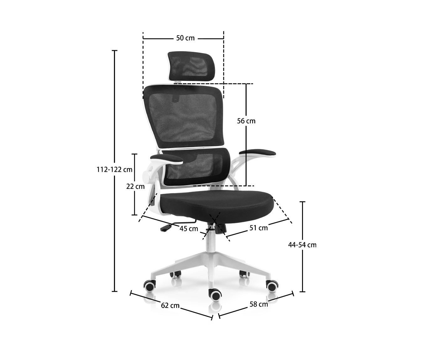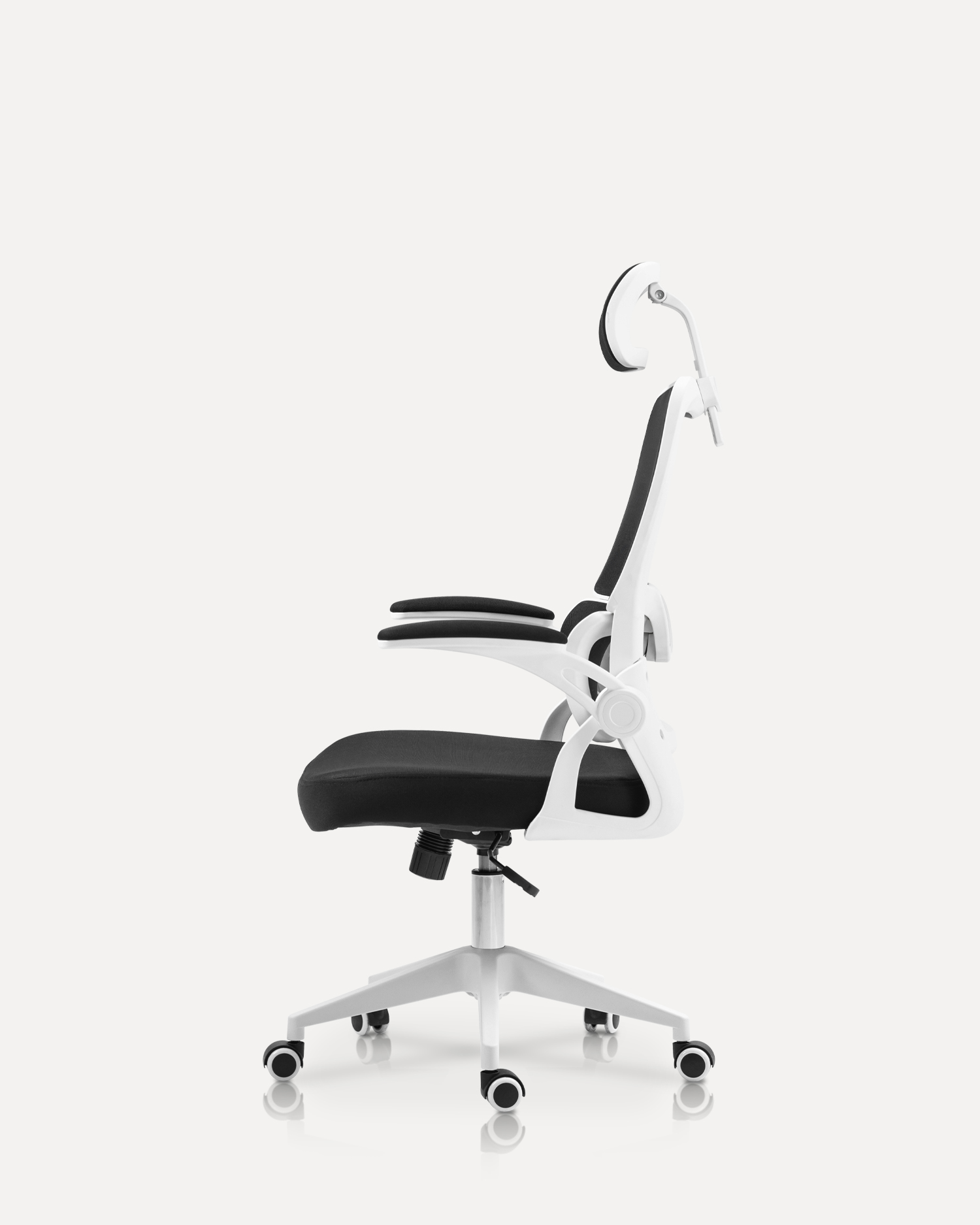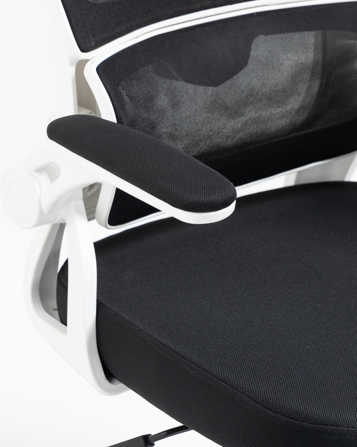 • Ipinagmamalaki ng upuan ng tanggapan na ito ang isang kapansin -pansin na puti at itim na scheme ng kulay, na may isang natatanging disenyo na umaakma sa anumang dekorasyon ng modernong opisina. Nilagyan ng adjustable armrests, pinapayagan ka ng upuan na ito na ipasadya ang posisyon ng iyong mga braso para sa pinakamainam na kaginhawaan. Ang mga armrests ay maaaring ilipat pataas o pababa, at maaari ring ayusin sa anggulo sa loob o palabas, tinitiyak na ang iyong mga braso ay suportado sa pinaka natural na posisyon.