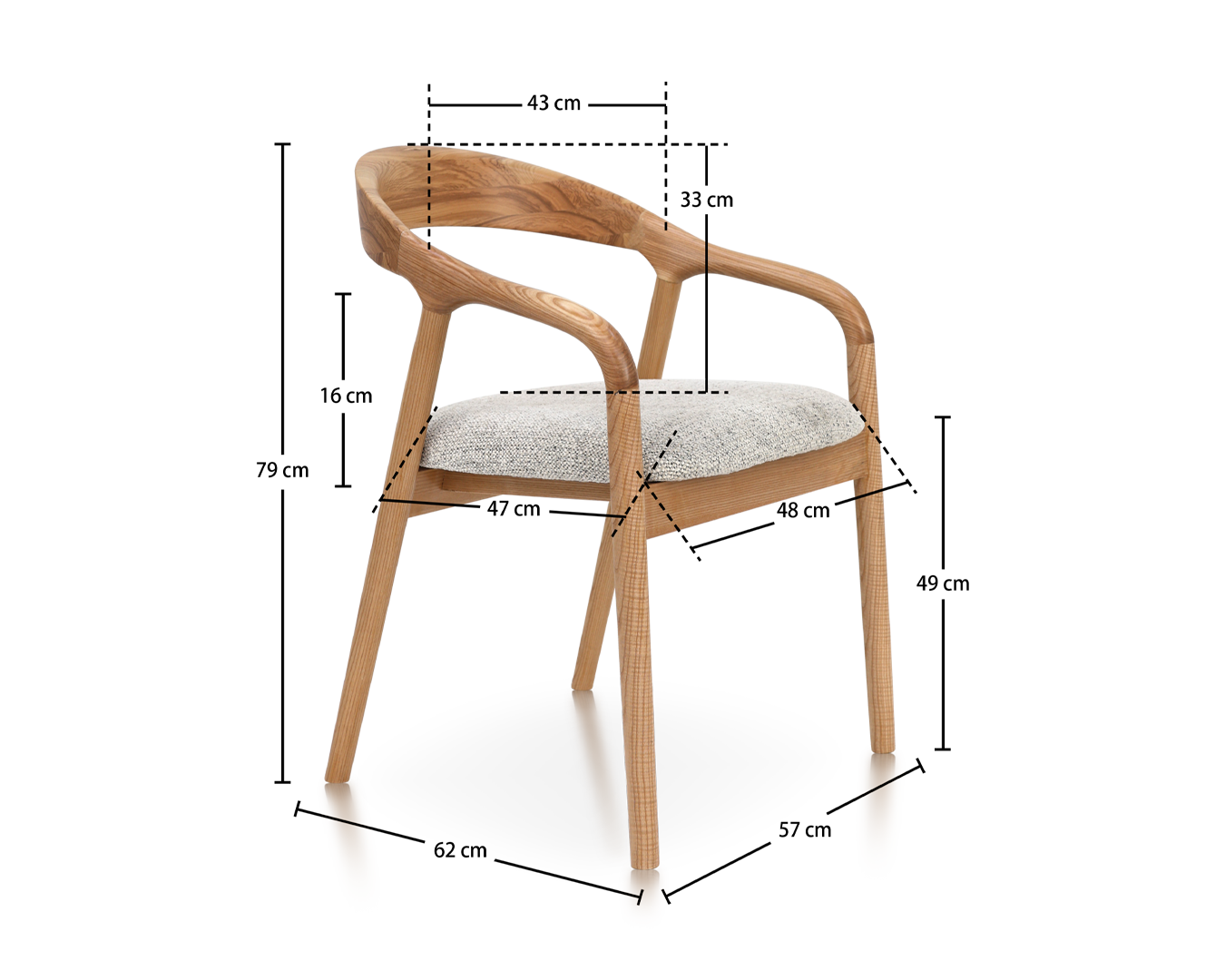 • Nagtatampok ng isang magandang hubog na backrest, ang upuan na ito ay nag -aalok ng isang mas natural, ergonomic na hugis na yakapin ang iyong katawan para sa labis na ginhawa. Ginawa mula sa de-kalidad na kahoy na abo, na materyal na itinayo hanggang sa pagdaragdag ng isang ugnay ng pagiging sopistikado sa anumang puwang.