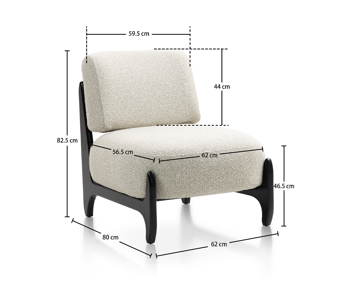 - Laki: W62*D80*H82.5cm / sh: 46.5 cm $